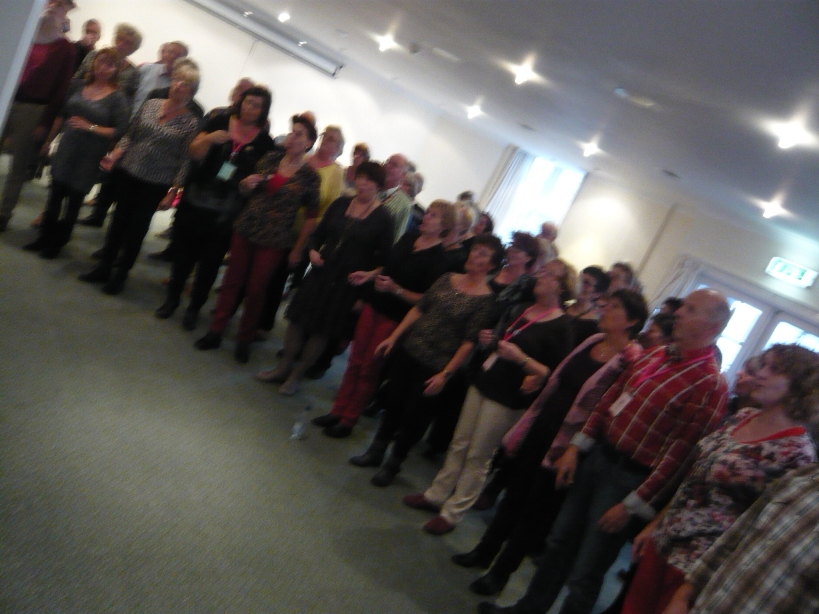 As many of Ladies & Gentlemen as I could snap in a restricted spaceI spent part of the Friday afternoon at last weekend’s convention coaching Ladies and Gentlemen, a mixed project chorus who had come over from Holland to perform on the shows. The singers - over 80 of them - are drawn from across the country, and they had had a total of 10 rehearsals and a couple of warm-up performances in preparation for coming to Harrogate. They are plannning to continue until the Dutch convention next spring, making it a project of about 15 months in total.
