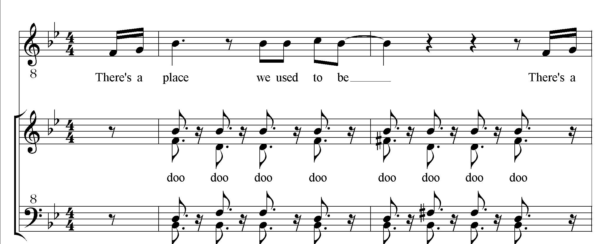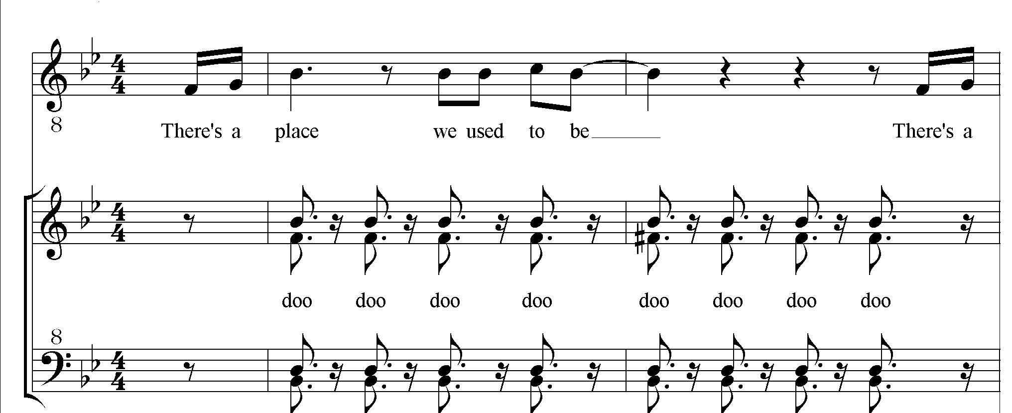 For example, in an arrangement of Take That’s I'd Wait for Life for soloist + female chorus, I originally had the opening accompaniment looking like this: