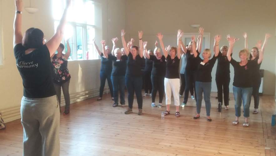 I have visited Cleeve Harmony a number of times over their 5 or 6 years of existence, and at wide enough intervals that I can really hear and see their development. Their director, Donna, has a much more stable and controlled conducting technique these days, and – probably not a coincidence – the chorus sound is cleaner and clearer, with good tonal integrity.