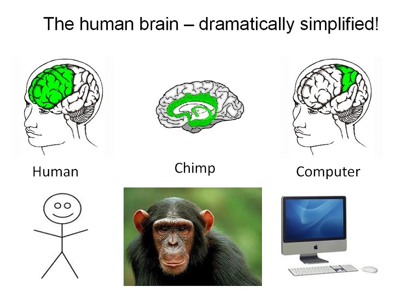 As Karen’s slide (which she has kindly let me share with you) shows, he then characterises these as your ‘human’ brain, your ‘chimp’ brain and your ‘computer’. This is clearly a simplified model of the brain, but its usefulness lies in its very simplicity - and it does at least bear a somewhat more direct relationship with the underlying complexities than the old stereotype of left and right hemispheres. (Which itself has some similarly valuable uses as a reflective tool - it’s just taken rather too literally rather too often.)